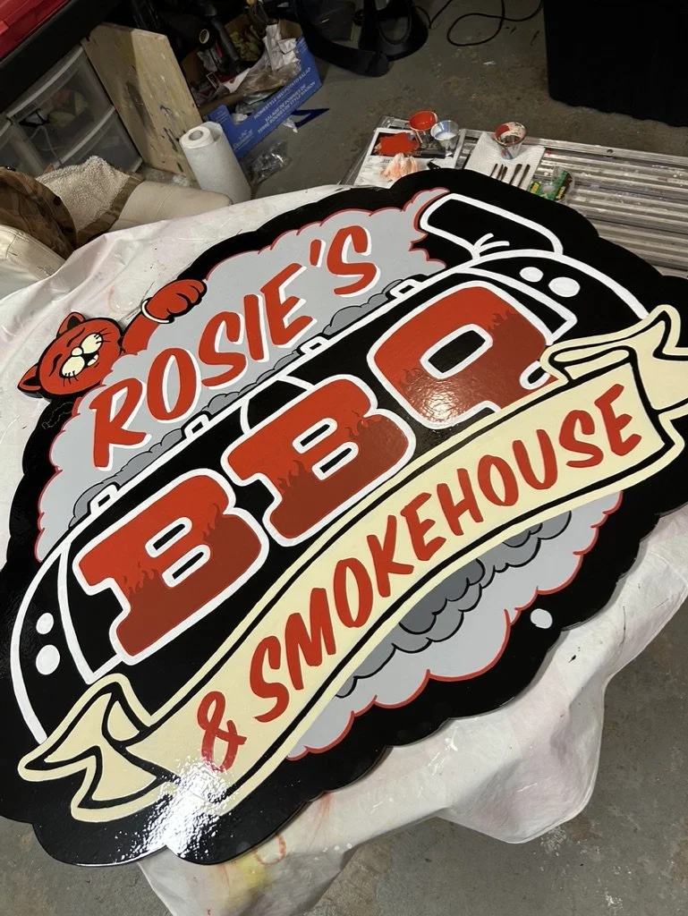 Custom designed, cut, and painted for our friends at Rosie’s Smokehouse & BBQ.